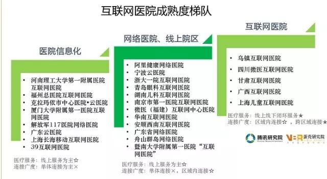 现25家互联网医院大致可划分为三个类型,对应不同的阶段:医院信息化、网络医院、互联网医院。