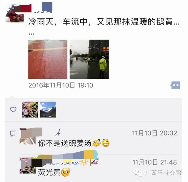 而玉林交警蜀黍却变身“小黄人”,延长了高峰站点时间,在辖区各大主要路口全力以赴做好雨天疏堵保畅工作,在寒风细雨中为广大民众的出行保驾护航。