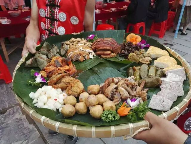 簸箕宴由长桌连接而成,从黄姚古镇东牌楼入口伊始直至西牌楼一字排开约1.6公里,能同时容下数千人就餐。
