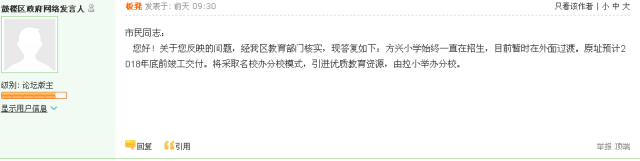 据鼓楼区网络发言人3月31日最新回复,经鼓楼区教育部门核实,方兴小学原址新校区预计2018年底前竣工交付。将采取名校办分校模式,引进优质教育资源,由拉小举办分校。