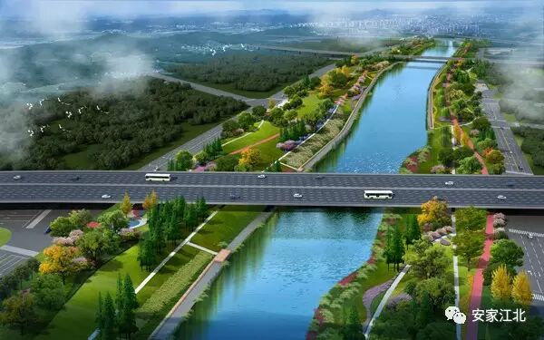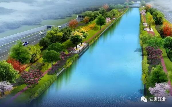 七里河工程设计遵循“生态与景观并重、河道与城市共生”的原则,将七里河打造成为江北新区的形象之河、活力之河、生态之河。
