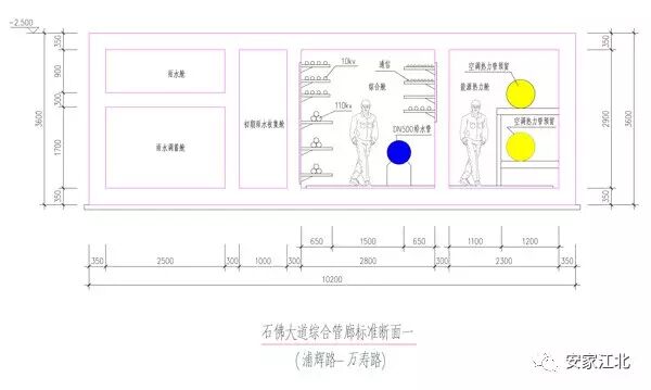 各道路下建设综合管廊根据管线现状及专项规划中管线种类布置管廊舱室,管廊舱室为1~4舱。先期启动段综合管廊总长度约21.16km。