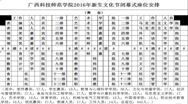 首页 | 美妆知识 | 预告||新生文化节闭幕式暨颁奖仪式 预告||新生文化节闭幕式暨颁奖仪式 2023-04-19 23:50:29 新生文化节闭幕式暨颁奖仪式 十二月的广西科师,浓郁的书香文雅之风吹散了凛冽的寒风。薰风轻送,带来希望,孕育美好,充满幸福。在这欢乐的时刻,我校新生文化节即将伴随着精彩的文艺汇演徐徐落下帷幕。时间:2016年12月6日19:30地点:艺术楼音乐厅动感的舞步,跳出蓬勃的朝气 。嘹亮的歌声,唱出青春的活力 。绚丽的灯光,跳动着年轻的脉搏 。缤纷的舞台,流淌着青春的旋律。这一切,只为等待您的到来!座位安排如下: