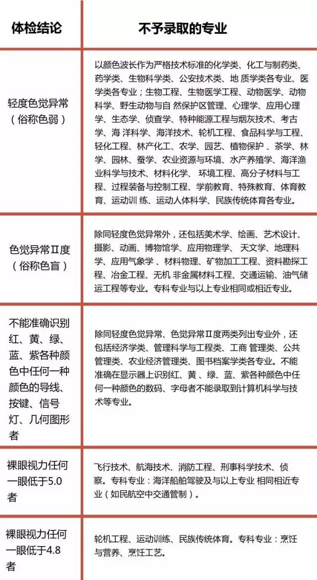 这部分考生为身体条件完全合格,说明他们的身体状况适合高等院校各类专业的就读条件,可以选报高校的各类专业。(但军事院校、