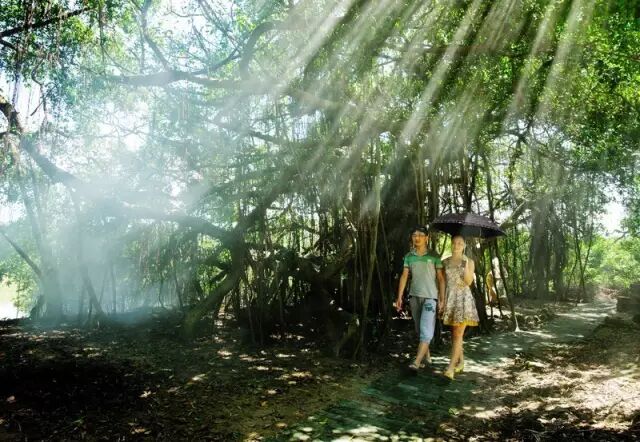 为什么要带爸妈来白浪滩呢?白浪滩素有“东方夏威夷”“南国第一滩”之称。因沙滩平缓,常常可见排排白浪滚滚而来,壮观瑰丽,故名白浪滩,是众多旅游者休闲疗养的好地方。 来到白浪滩,给妈妈拍几张踩浪花照片,可以让妈妈找回自己的少女心哟。平缓的沙滩,细软的沙子,雪白的浪花,再加上爸爸妈妈靓丽的身影,这应是最美的画面。当下午灿烂的阳光褪去它的耀眼和刺目,整个海滩在一片璀璨中变得柔和温馨起来,一家人手牵手在沙滩漫步······ 门票:0元 交通:在防城车站(三运站)或港口车站都有前往白浪滩专线,在柜台买票上车即可,下车即可看见白浪滩游客服务中心。 小编推荐,怪石滩不得不去。它因奇特的海蚀地貌形成海枯石烂之景,成为婚纱摄影最佳之所。千百年来潮起潮落中所创造的海蚀地貌,崖高岩矗,奇险万分,让怪石滩成为大自然的一绝。它以大自然最朴素的形态,演绎出人类亘古不变的情怀。在这“海枯石烂”的壮美景色前,给爸妈拍张情侣照,留影纪念,别有意境。 波涛澎拜,浪花四溅,声势磅礴,像是千军万马,从天边奔腾而来。面对这波澜起伏、惊涛骇浪的壮观景象,即使是一颗沮丧的心也会瞬间变得豪情满怀。 门票:0元 交通:自驾 带爸妈去赏绿 十万大山国家森林公园位于上思县东南部,地处十万大山水源林核心区,森林覆盖率98%,动植物资源非常丰富。景区内空气清新,空气负氧离子含量每立方厘米高达8.9万个,被誉为“华南第一天然氧吧”,是集观光度假、休闲疗养、避暑探险为一体的旅游胜地。 逃离喧嚣,回归自然。满眼的绿色和丰富的负氧离子一定是爸爸妈妈的最爱。在这“天然氧吧”,爬爬山、吸吸氧、洗洗肺,再好不过。 门票:35元 交通:由防城港到上思县,在上思汽车站下车后乘摩托车到西门汽车站(2元),那里有班车开往森林公园,车票5元。 古榕部落位于东兴市竹山村榕树头自然村,三面环海,是大清国一号界碑景区中美丽的自然景点之一。古榕部落由一颗千年古榕、多颗大叶榕及小叶榕组成。榕树伟岸挺拨,婀娜多姿,形成子孙满堂、龙飞凤舞等形象生动的奇特景致。炎炎夏日里,置身于一袭榕荫和婀娜的翠竹纠缠盖成的绿色拱型小道上,清爽至极。 树林的尽头是片海······在这里除了感受千年古榕沧桑历史的厚重感外,还可步入栈道观海亭,远眺北仑河口一带的海景,看波浪下苍郁墨绿的红树林,洋洋数千亩,颇为壮观。 许多游客都有疑问为什么绿色植物的红树林叫红树林呢?在这里小编要科普一下,红树林是热带、亚热带滨海泥滩上特有的常绿灌木或乔木植物群落,大部分树种属于红树科,所以生态学上统称为红树林。小伙伴们记得给爸爸妈妈讲解呦! 门票:0元 交通:从防城港出发,有直达东兴的班车,13元;从东兴出发,有直达古榕部落的公交专线。 带爸妈吃啥? 想让爸妈在防城港吃的开心,直接简单粗暴地带他们吃海鲜和水果,这两样食物应该是大多爸爸妈妈们眼中的防城港标志美食。来都来了,不吃怎么行? 带爸妈吃海鲜