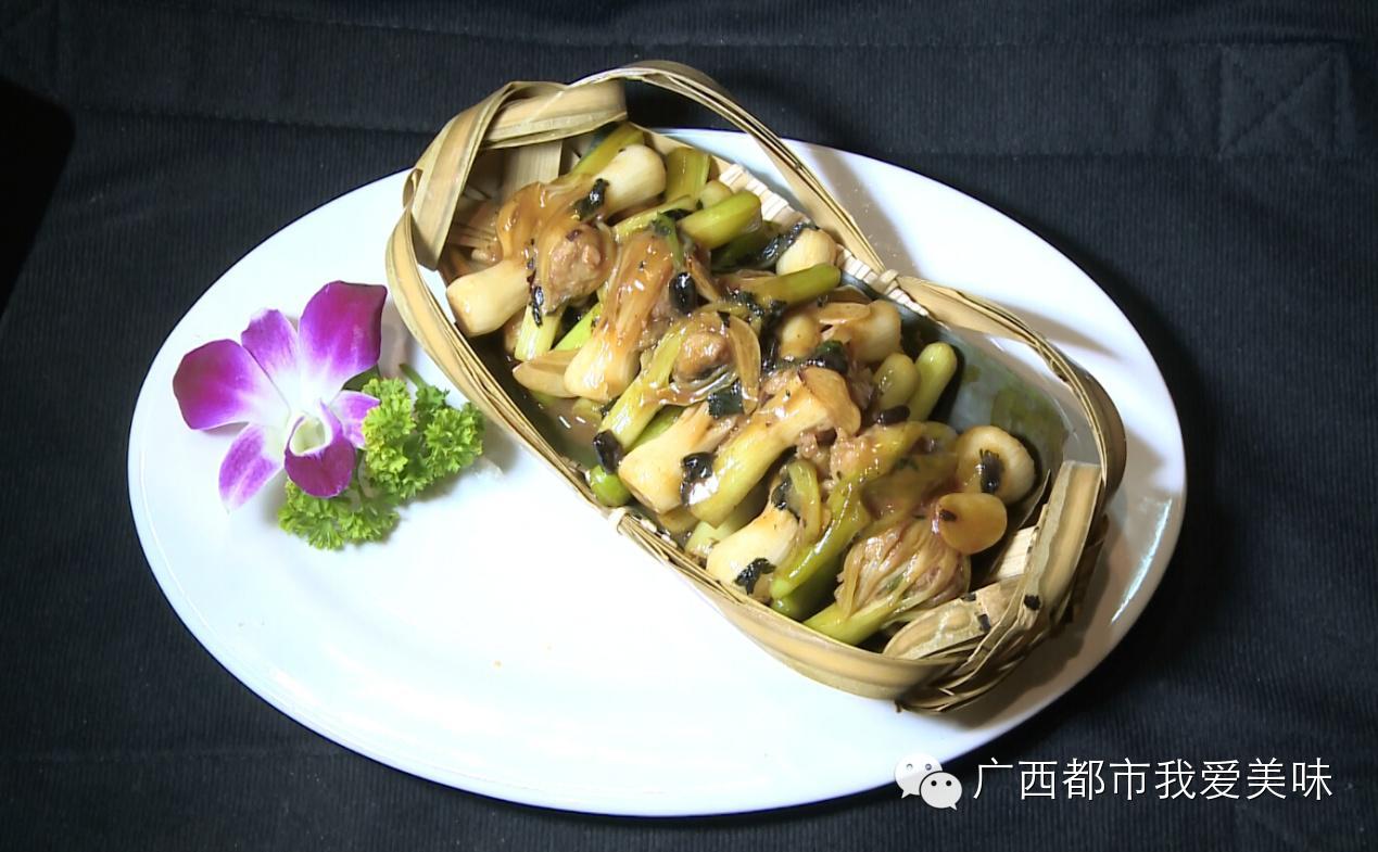 林大厨说了,贺州人基本上逢菜必酿,除了豆制品,果菜类、叶菜类、根茎类,只有你想不到没有他们酿不了,这道大蒜酿就是典型代表,用牙签在蒜根上细细划开,塞上打好的馅肉,过油定型,在加入豆豉紫苏一番焖炒,味道也是非常特别的哦!