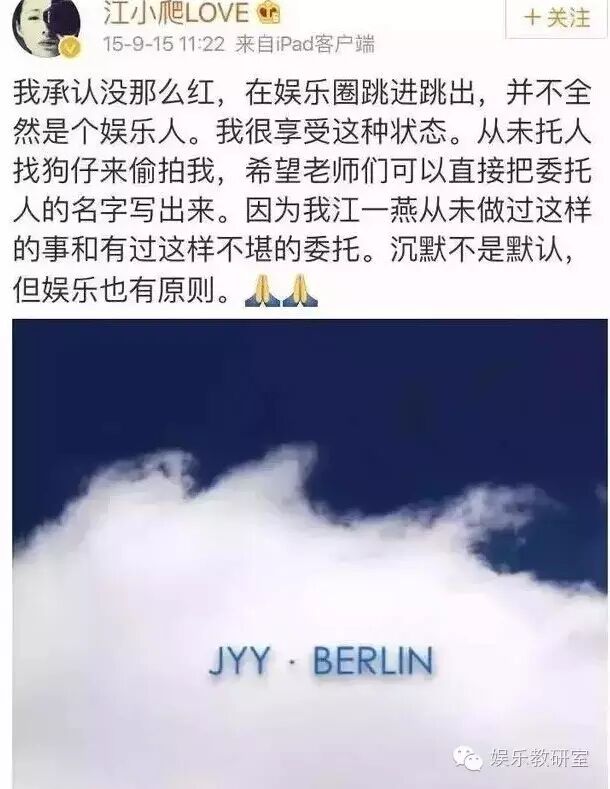 。去年6月各大微博营销号爆出邓超出轨门女主角就是江一燕,有媒体曾曝邓超与她在合作电影后就互生好感,甚至经常在深夜彻聊。而关于此事,江一燕说“艺人也需要有朋友的”