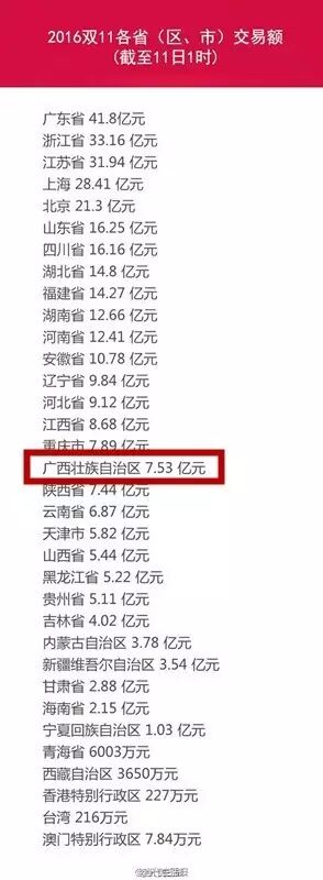 根据数据统计广西人在双十一当天也是狂砸了7.53亿