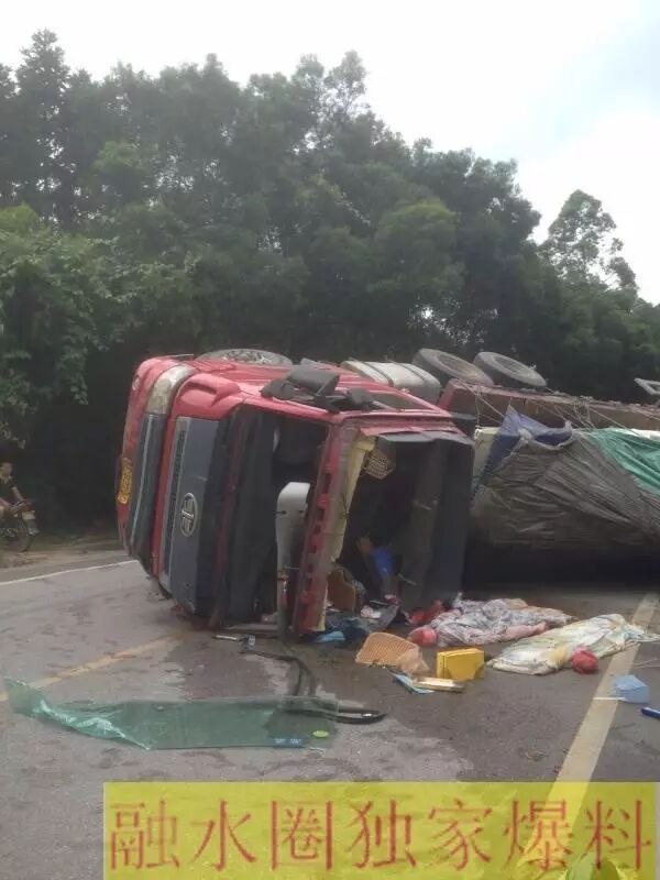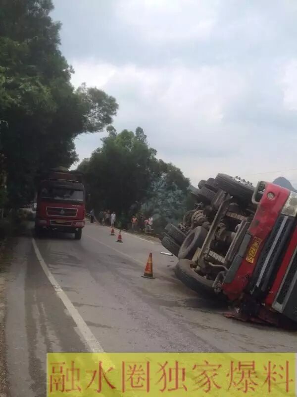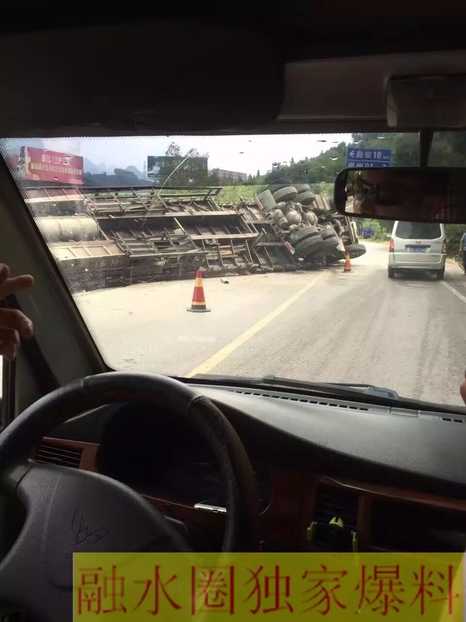 你以为这样就结束了吗?然而并没有,对于车祸,小圈是一万个不希望发生,可是偏偏还是发生了,就在下午,融水至柳州路段,东江下坡路段,一辆大货车发生侧翻,横在路中间,看着实在是危险!