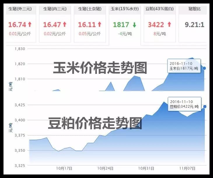 今日全国玉米均价为1817元吨,较昨日价格下跌4元/吨,较上周价格上涨10元/吨,猪粮比为9.21:1;今日全国豆粕均价为3422元/吨,较昨日价格上涨8元/吨,较上周价格下跌8元/吨。
