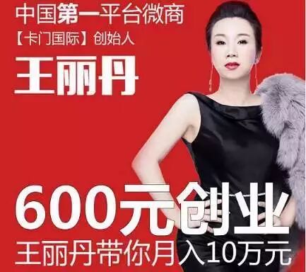 【卡门国际】是目前中国微商人数最多,赚钱能力最强的微商团队,都知道,加入【卡门国际】,就等于拿到一张财富入场券,截止到2016年5月,约有30多万人成为【卡门国际】的代理,成为王丽丹的事业合伙人!正如王丽丹说的,她的名字,她的团队,就是一个权威,就是一个品牌,就是赚钱的保障!