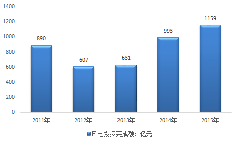 2011-2015年我国风电投资完成额统计图