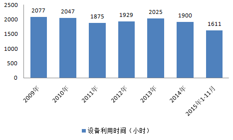2009年我国6000千瓦及以上电厂发电设备利用2077小时;2015年1-11月我国6000千瓦及以上电厂发电设备利用1611小时。