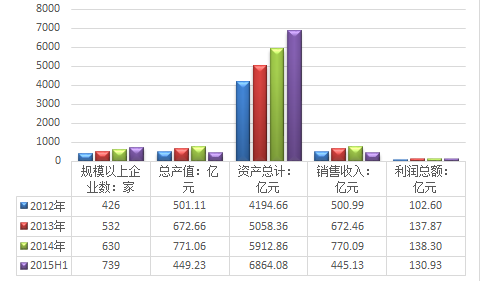 2015年上半年我国风力发电行业资产总额达到6864.08亿元,较2014年同期比增长10.95%;我国风力发电行业总产值为449.23亿元,较2014年同期比制造13.25 %;2015年上半年我国风力发电行业销售收入为455.13亿元,销售收入同比增长12.44%;上半年利润总额为130.93亿元,利润同比增长39.00%。
