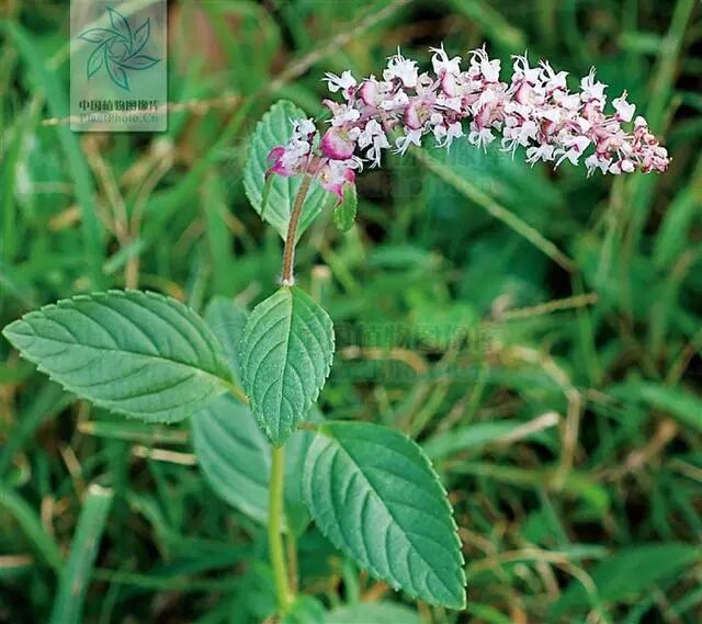 凉粉草的纸质叶对生在四棱形的茎上,锯齿大而稀,轮生的唇形花在茎上一层一层的往上累,和我们常见的香料罗勒、紫苏等都是近亲。