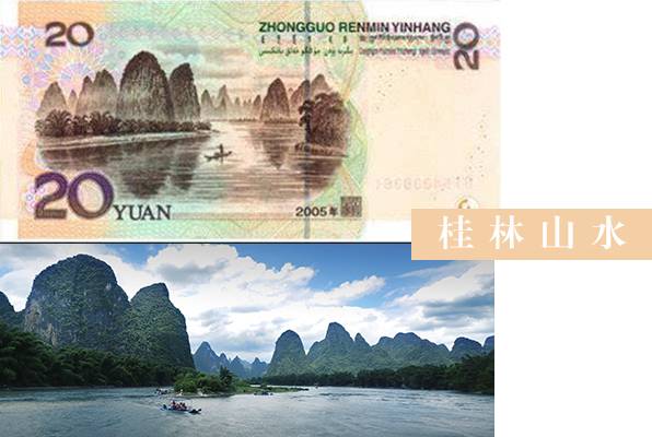 有着很多著名的风景名胜都被印在人民币的背面