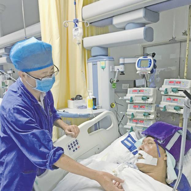 在重症室里记者见到了陈世余。此时的陈世余双目紧闭,身上插着各种治疗管子,安安静静地躺在病床上。陈世余的主治医生周医生告诉记者,患者送到医院时出现抽搐,经过救治,目前状况基本稳定。但患者还处于深度昏迷中,没有脱离生命危险,无法预测何时能醒过来。