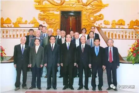 越中人民论坛第五次会议与会代表合影。老专家黄群(第一排左三)。 图片来源:广东省人民对外友好协会 |