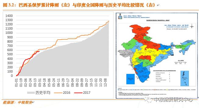 过去一周,巴西中南部降雨量较少,圣保罗日均降雨量远低于去年同期与历史平均水平。未来7天,中南部地区天气持续干燥,降雨量整体低于平均水平,整体略低于平均。印度方面,2017年3月1日至3月29日,印度主产区马邦天气干燥,降雨量远低于历史平均,北方邦降雨同样低于平均,但卡特拉卡邦降雨充足。未来7天,印度全国持续干燥,几乎无降雨。