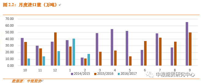 据海关最新公布数据显示,2月进口食糖18万吨,同比增加7万吨,环比减少23万吨。按年度统计,2017年1-2月总计进口食糖59万吨,同比增加19万吨;按榨季统计,2016/17榨季累计进口食糖105万吨,同比减少48万吨。