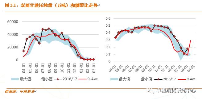 泰国:截至3月23日,泰国2016/17榨季累计压榨甘蔗8820万吨,同比下降5%,累计制糖940万吨,同比下降1%。其中,原糖产量为660万吨,同比下降3%;白糖产量为270万吨,同比增长1%。
