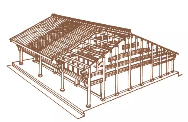 用大木作为横梁,房屋的屋面重量通过椽、檩、梁传到柱和地基上,由于横梁大木承担了屋顶的大部分重量,所以整栋建筑完全由几根横梁作为支撑而受力均衡。