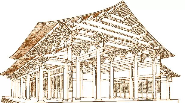 所以这种建筑形式,可以很大程度地扩大空间,在宫殿、庙宇、寺院等大型建筑中普遍采用,更为皇家建筑群所选。