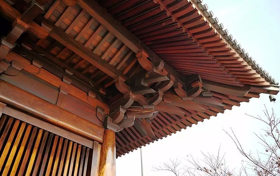这种结构,多用较为细小的木头,一层层叠加,将屋顶的重力,一点点向下延伸,最终达到平衡。