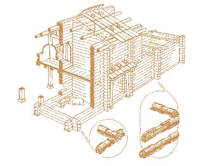 这种结构以圆木或矩形木料平行向上层层叠置,在转角处木料端部交叉咬合,形成房屋四壁。