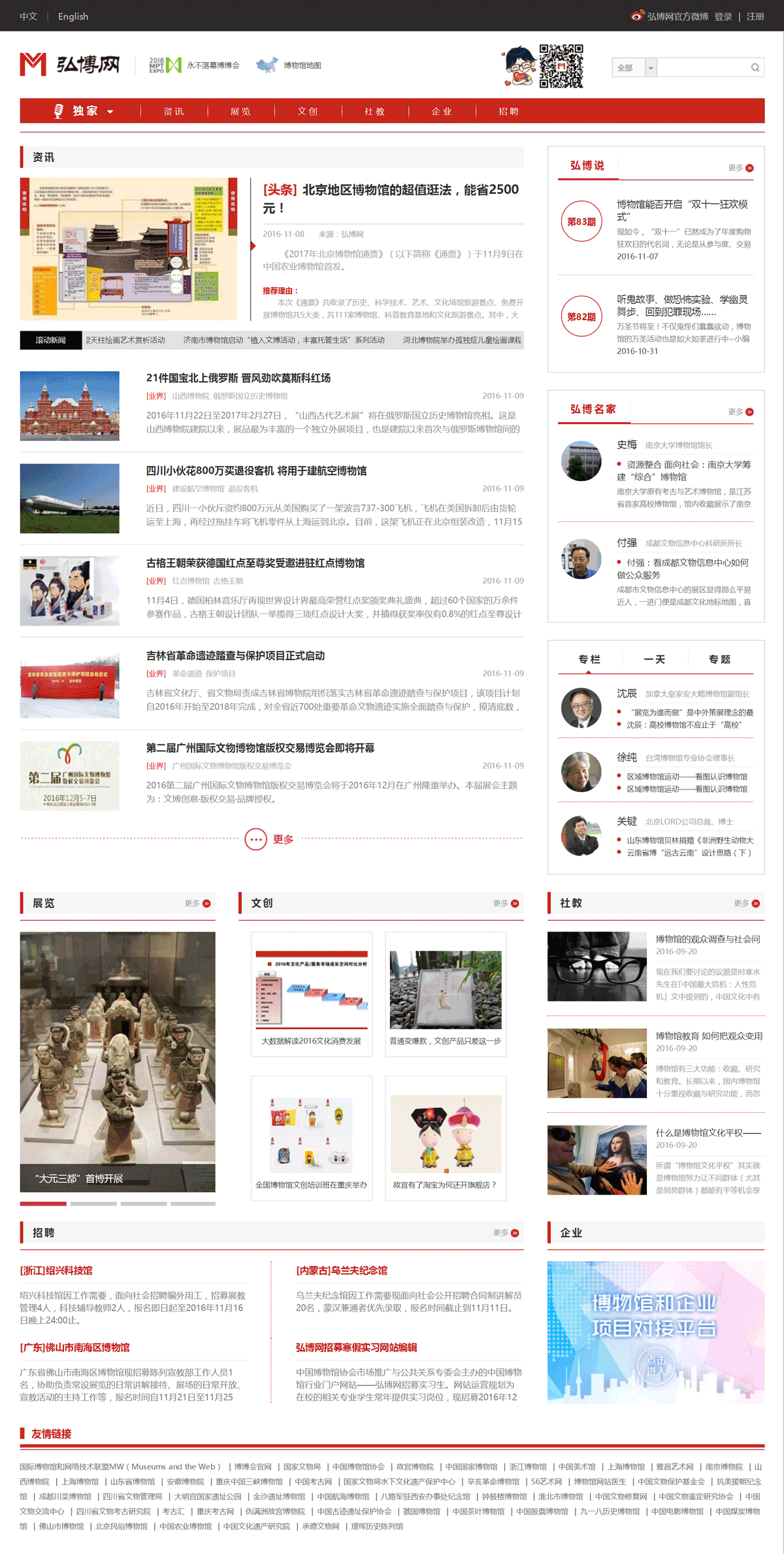 弘博网完成改版,全新上线!版块设置以博物馆业务部门为导向,新增展览、社教、文创、企业等,更重实操,欢迎登录www.hongbowang.net体验!