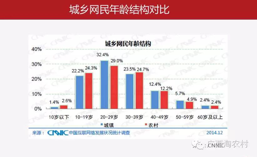 城乡网名的聚焦在10~40岁之间,这也更加有力的推动农村电商的高速发展。