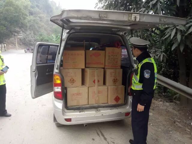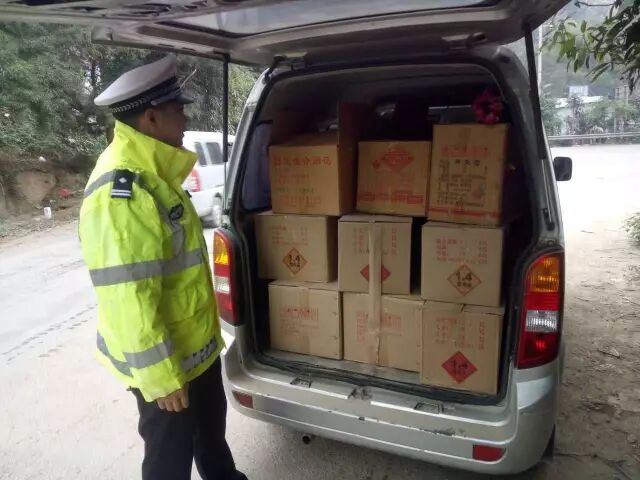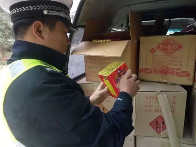 在驾驶员打开车后厢门时,民警惊呆了,除了正副驾驶位置上的座位,其它座位都已经被全部拆掉,取而代之的是一箱箱印有各种不同样式的烟花字样箱子。经检查,各种不同样式的烟花共10余箱,还有一些散装俗称为“开门炮”的堆在纸箱上,塞满了整个车厢。