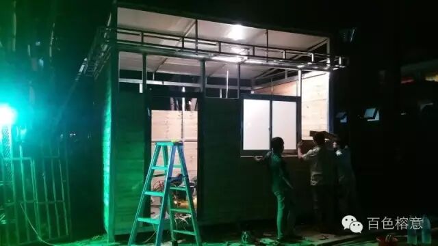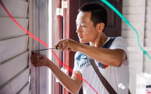 泓鹏工作人员为“爱帮小屋”做最终的装饰点缀。