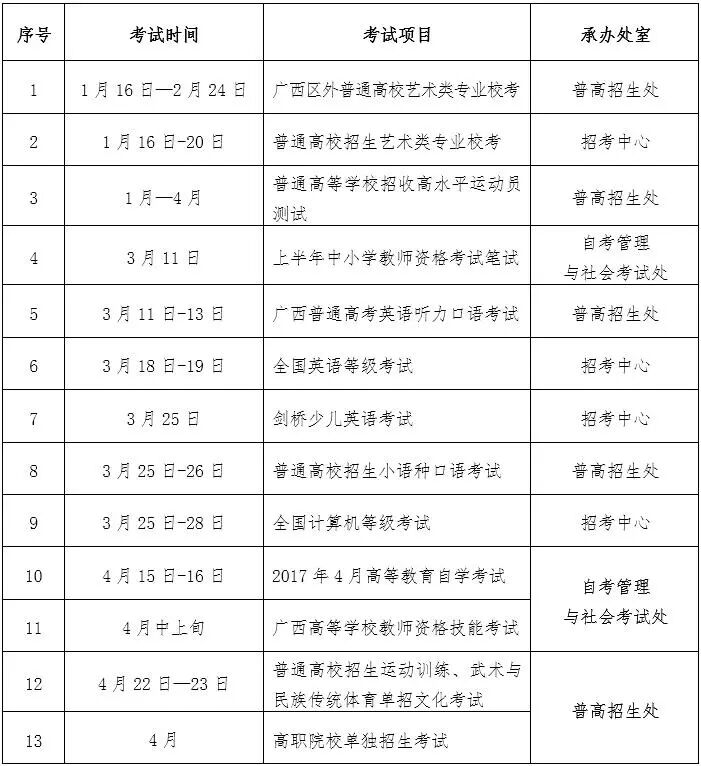 首页 | 美妆知识 | 资讯 | 2017年广西招生考试院考试历出炉啦,看看哪些考试与你有关? 资讯 | 2017年广西招生考试院考试历出炉啦,看看哪些考试与你有关? 2023-04-19 23:50:29 点击上方柳园清风,一键关注我们!2017年你需要参加哪些考试?近日,广西招生考试院公布2017年考试历,有应考需要的考生可根据该考试历提早做好复习准备,积极应考,考取好成绩。2017年广西招生考试院考试历广西招生考试院原创发布 版权所有,转载需注明“柳园清风”柳园清风广西招生考试院微信号: liuyuanqingfeng