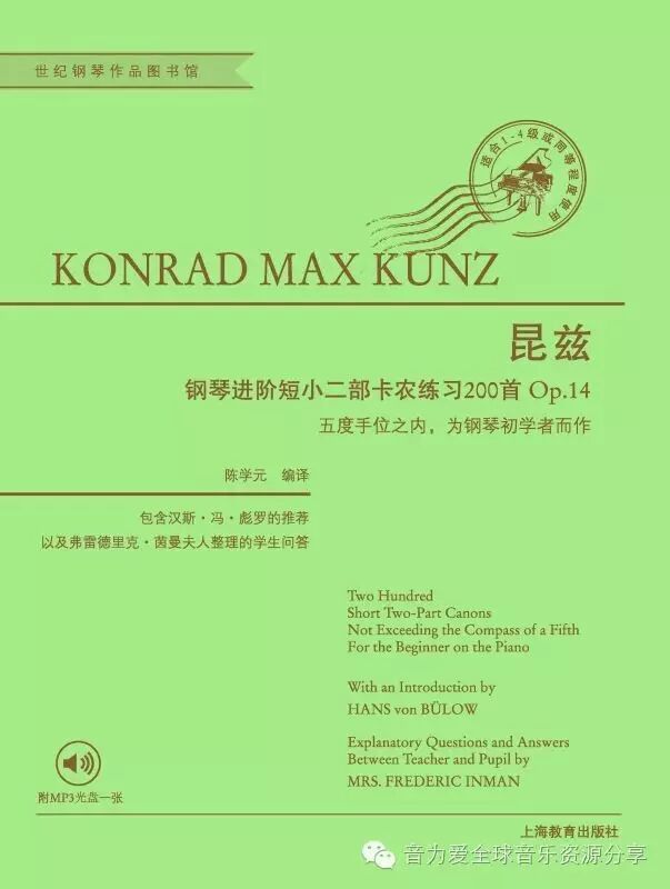 昆兹《200首钢琴进阶短小二部卡农练习》有以下四大特点: