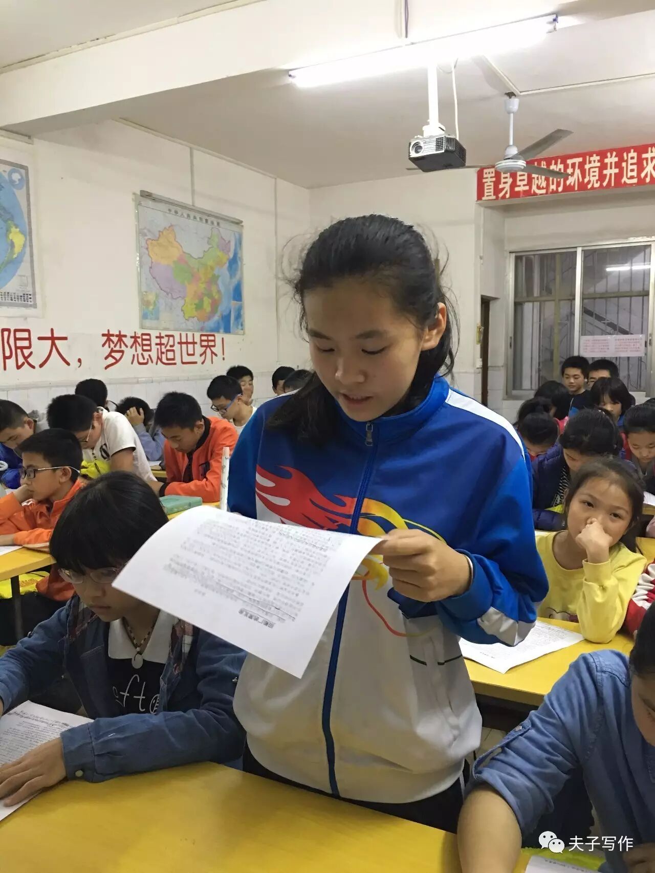 (五年级的陆梓萌就是一个随时随地都能读书的小夫子,而这样的孩子在夫子比比皆是。)
