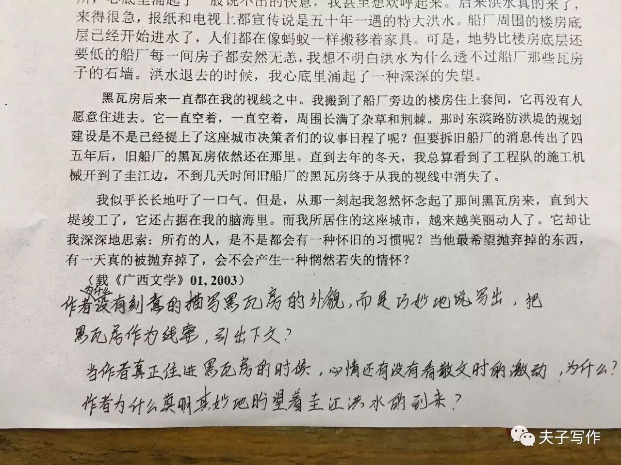 上周,老张的班以阅读为主,当然还有惊喜的名家读书课堂。这次夫子六年级重点班的孩子所读的文字是著名诗人吉小吉的作品《旧船厂的黑瓦房》,这是作者2003年发表在广西文学上的一篇散文。