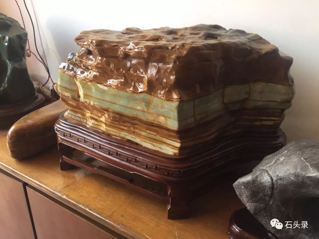 彩玉石石肤温润如脂,富有光泽,层理变化有序,色韵自然,纹理清晰而具有韵味。