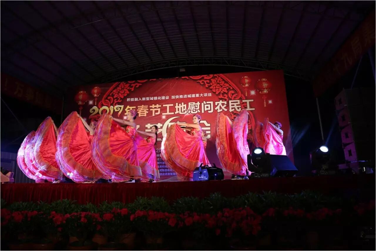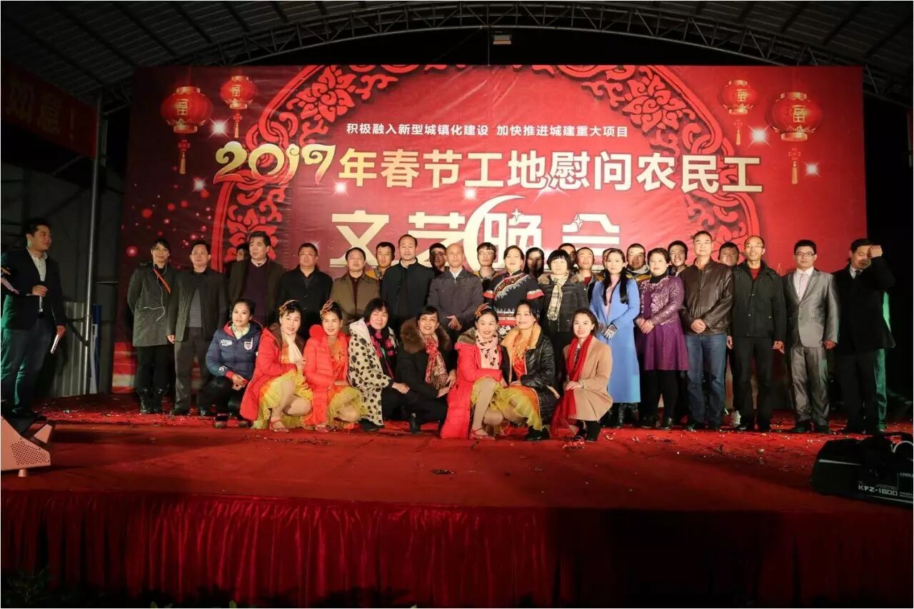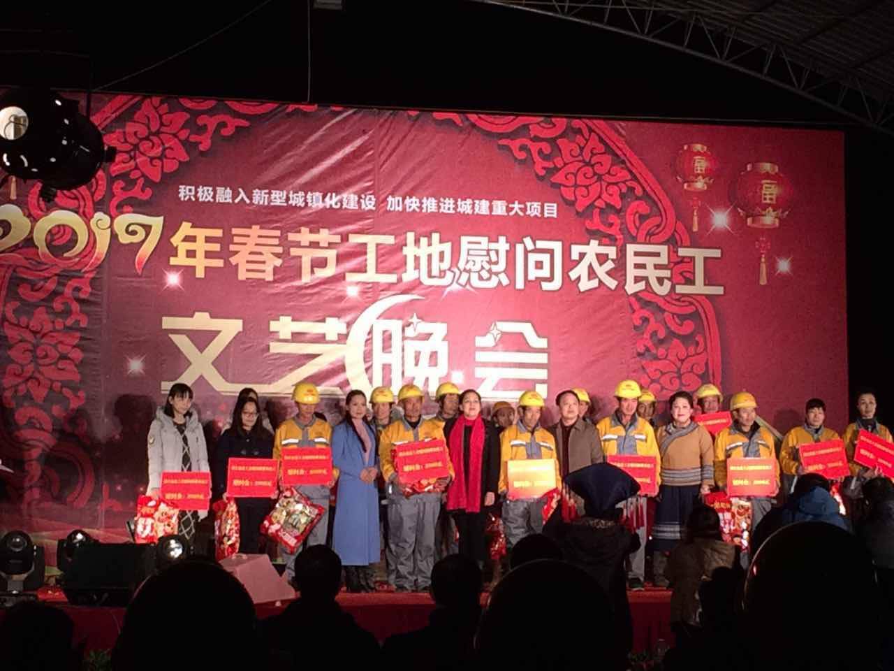 为迎接2017年新春佳节的到来,感谢农民工和外来务工人员的辛勤劳动,深切慰问奋战在重大项目一线的广大农民工朋友,将“拓展幸福空间”的信条和“建设美好未来”的愿望落在实处。2017年1月17日晚上,由崇左市新型城镇化三年攻坚行动领导小组、崇左市总工会、崇左市城投公司工会主办,崇左市住房和城乡建设委员会工会协办,中铁十九局集团有限公司、广西共创建设管理有限责任公司承办的“积极融入新型城镇化建设•加快推进城建重大项目”2017年春节工地慰问农民工文艺晚会在崇左大桥项目工地工棚倾情上演。