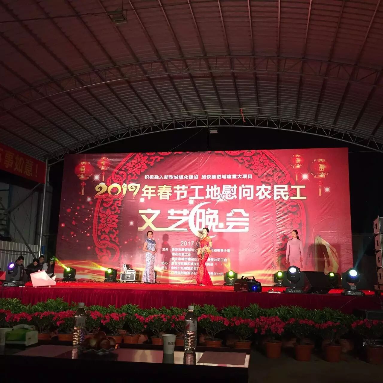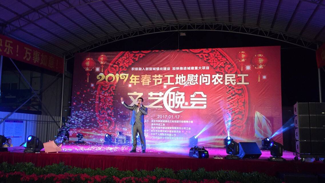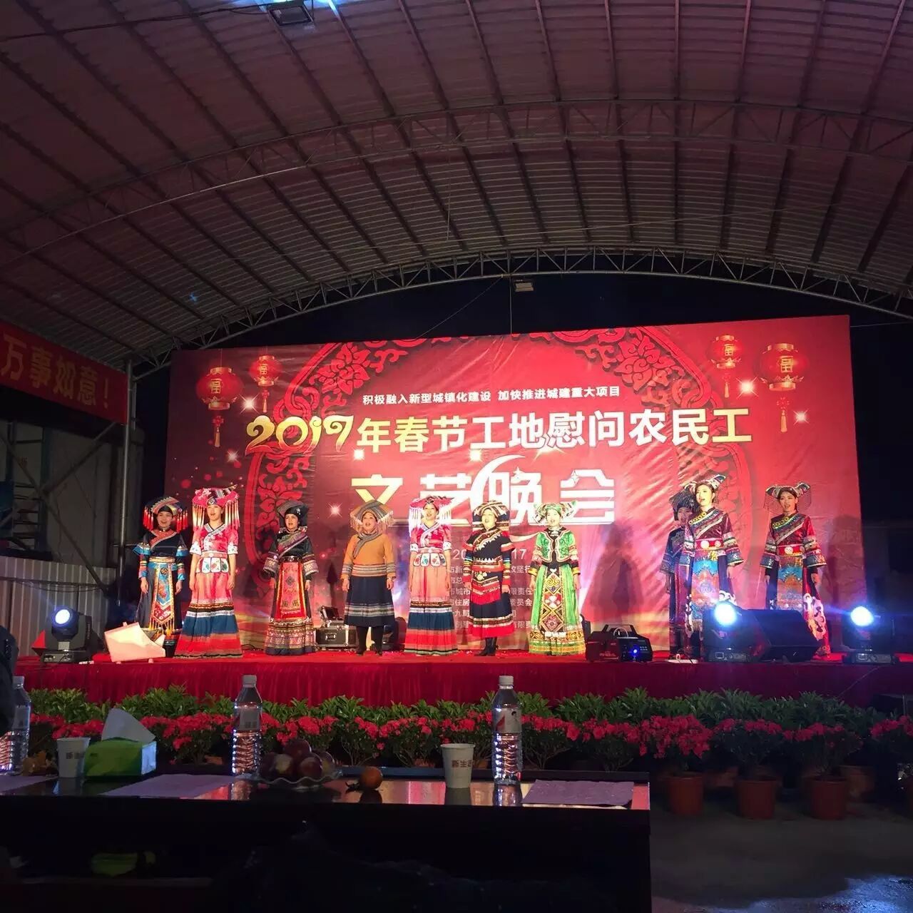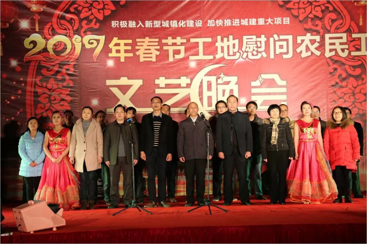 为迎接2017年新春佳节的到来,感谢农民工和外来务工人员的辛勤劳动,深切慰问奋战在重大项目一线的广大农民工朋友,将“拓展幸福空间”的信条和“建设美好未来”的愿望落在实处。2017年1月17日晚上,由崇左市新型城镇化三年攻坚行动领导小组、崇左市总工会、崇左市城投公司工会主办,崇左市住房和城乡建设委员会工会协办,中铁十九局集团有限公司、广西共创建设管理有限责任公司承办的“积极融入新型城镇化建设•加快推进城建重大项目”2017年春节工地慰问农民工文艺晚会在崇左大桥项目工地工棚倾情上演。
