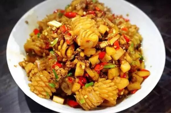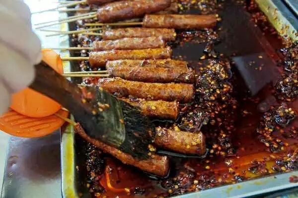 有嚼劲的肠衣,配着甜咸的肉,又刷着他们湖南特色的辣椒,还真的挺过瘾的。2.5元1根,好多人几十根的买,由于老板靠炸香肠将儿子送出国了,所以人送外号“出国香肠”!