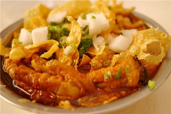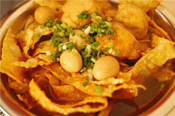 螺蛳粉原产广西柳州,有酸、辣、鲜、爽、烫的独特风味,非常符合湖南人嗜辣的习惯。吃螺蛳粉时,你可别发出“啊呀没得螺蛳肉啦”的疑问!这可不是老板偷工减料,正宗的螺蛳粉是看不到螺蛳肉的,而是放在汤头里,和猪骨头等20多种香料一起熬煮,这才产生酸辣腥的独特风味,吃起来回味无穷。
