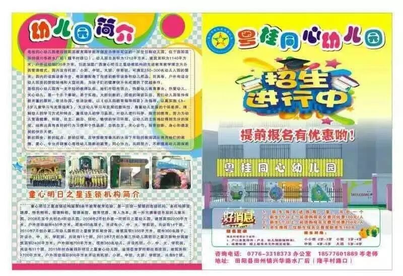 粤桂同心幼儿园2016年秋季学期开始招生啦!