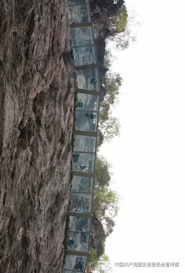 据了解,这条广西目前最长玻璃栈道依山势而造,全长366米,高88米,宽1.6米,中间还设计了一个长6米、宽3米的全透明玻璃观景台。站在广西目前最长玻璃栈道拍照发朋友圈,是一件倍有面子的事儿!
