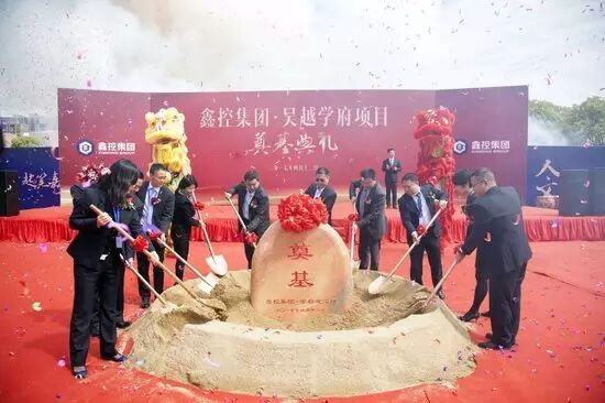 2017年4月12日,鑫控集团吴越学府项目在嘉兴科技城项目现场举行盛大奠基仪式,宣告鑫控集团地产板块首进嘉兴项目正式启动建设。中科建设开发总公司总经理、鑫控集团董事长顾玮国,中科建设开发总公司副总经理、鑫控集团总经理张建勇,中科建设开发总公司总经理助理史峰到场参加了奠基仪式。鑫控集团部分高管、中科建设开发总公司江南分公司高管、鑫控集团各部门代表以及来自嘉兴各大主流媒体记者一同参加了奠基仪式。上午10点,伴随着现场激烈欢快的击鼓表演与象征吉祥的舞狮表演,奠基仪式正式开始。