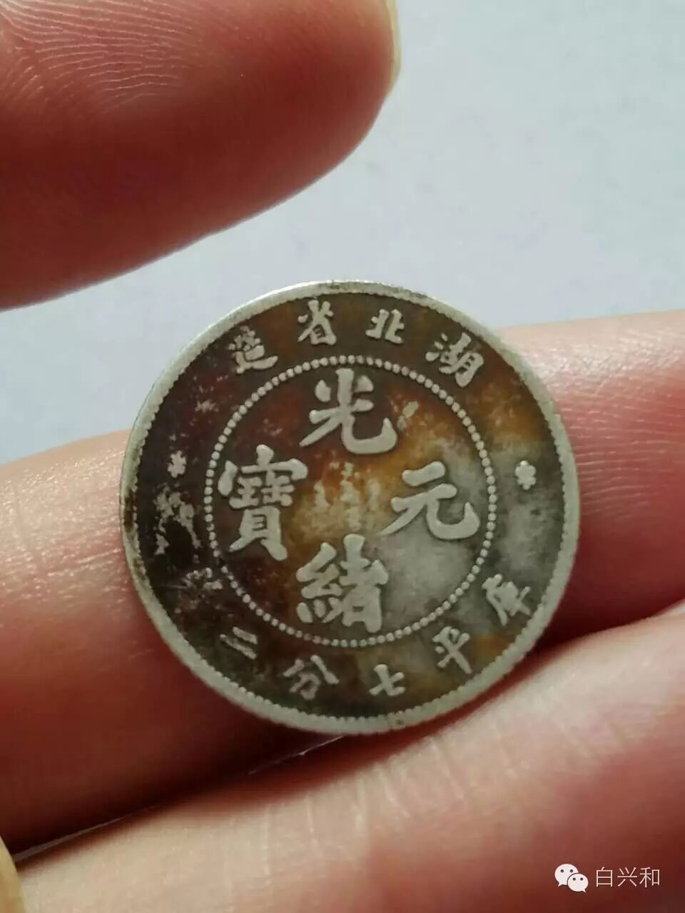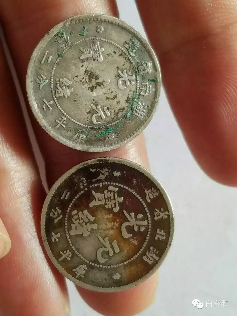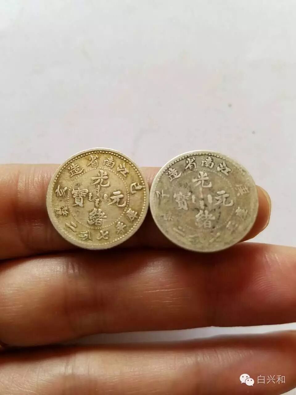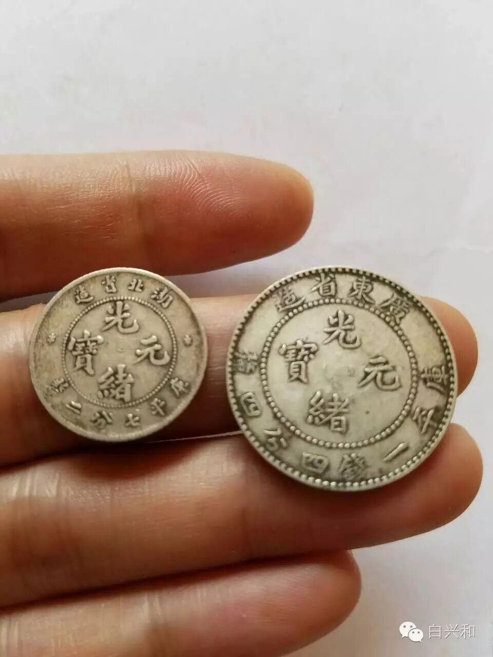 【序号】33-5号 【名称】湖北七分二厘广东挑光2枚合拍 【年代】清 民国 【材质】银 【尺寸】标准。 【描述】湖北七分二厘银币,面文尚可,龙鳞有稍有流通磨。广东挑光,品像完好,品像如图,升值空间大,值得收藏的品种。包真,放心拍。 【起拍】无底价。 【估价】400元以上。 【佣金】买卖双方各3%,卖家包邮。