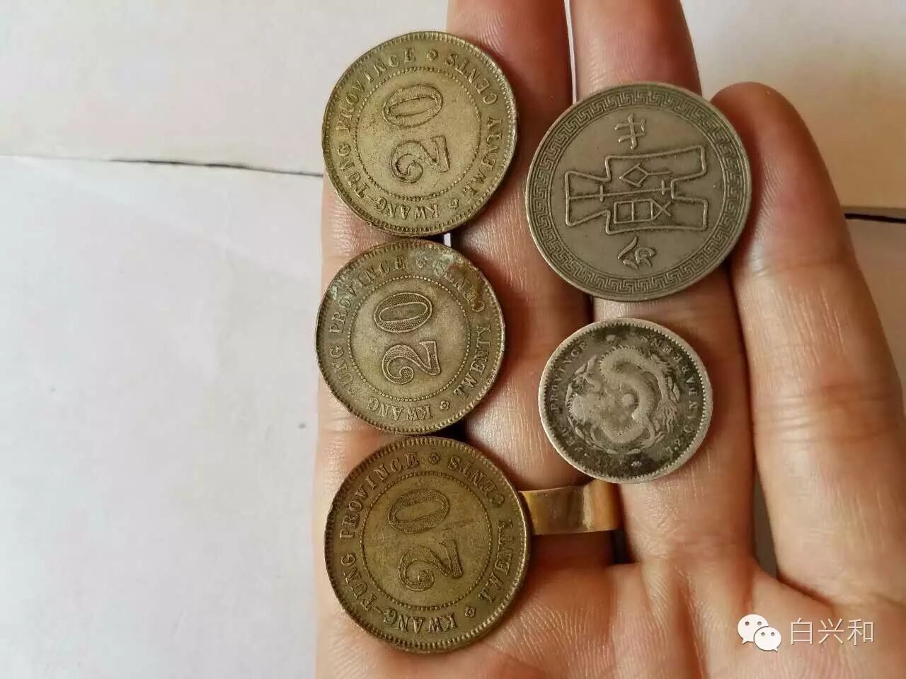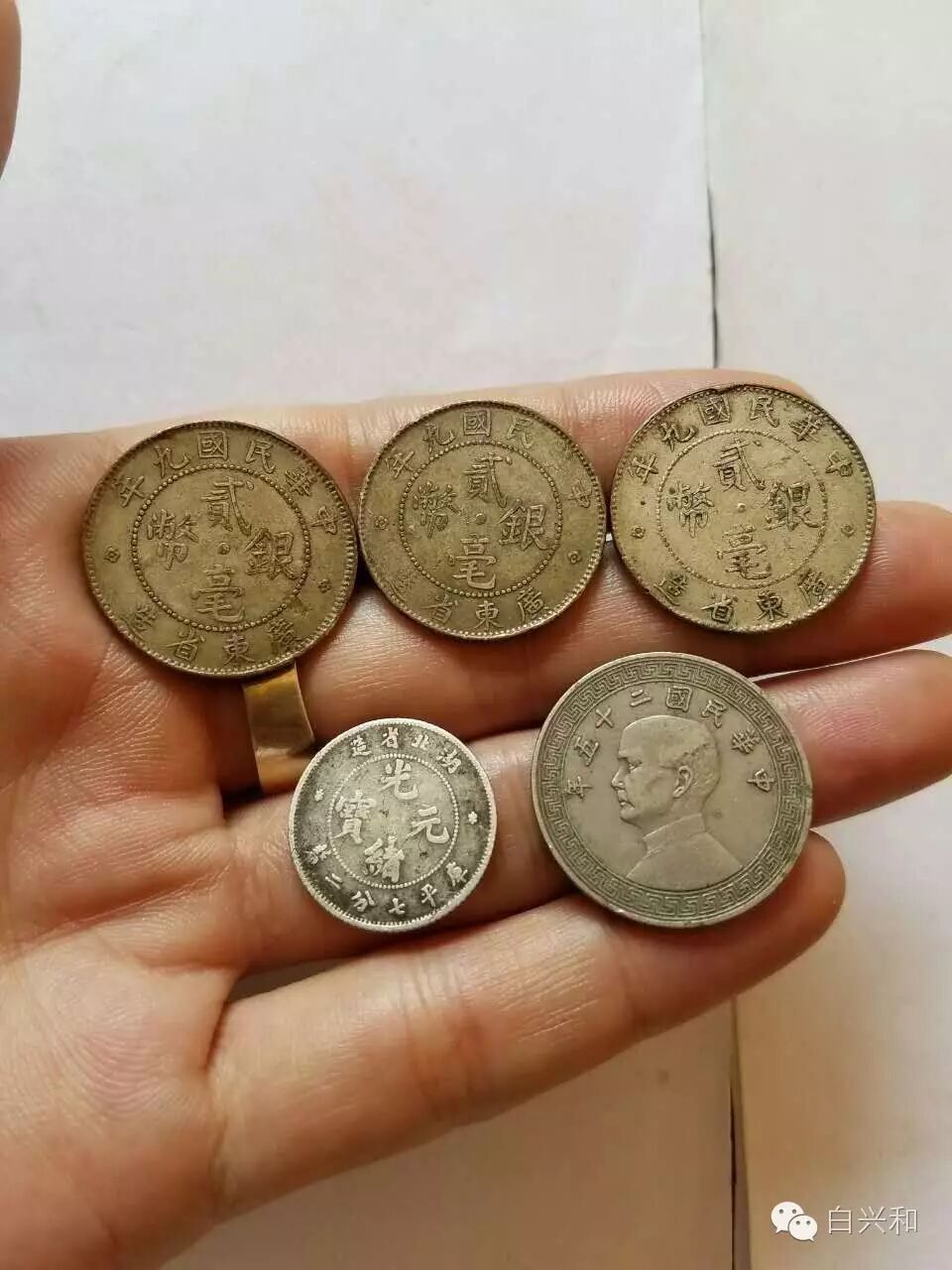 【序号】33-4号 【名称】民国银毫镍币湖北单毫5枚合拍 【年代】清 民国 【材质】银 镍 【尺寸】标准。 【描述】九年贰毫银币3枚,五彩包浆,边有小磕。湖北七分二厘银币,面文尚可,龙鳞有流通磨损。二十五年A版镍币,品像完好,品像如图,升值空间大,值得收藏的品种。包真,放心拍。 【起拍】无底价。 【估价】300-400元。 【佣金】买卖双方各3%,卖家包邮。