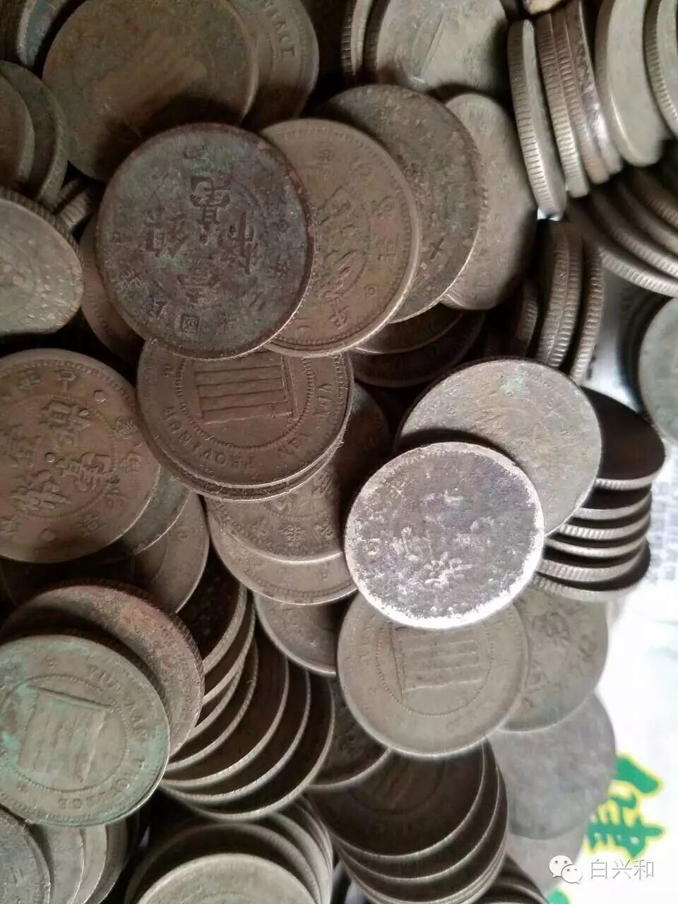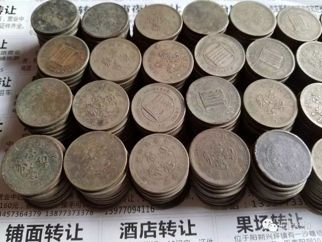 【序号】33-19号 【名称】云南壹毫镍币400枚合拍 【年代】民国十二年 【材质】镍 【尺寸】21*1.6mm。 【描述】云南壹毫镍币400枚,大多数字口清晰,少量品弱,潜力品种,机会难得,喜欢的不要错过,品像如图,升值空间大,值得收藏的品种。包真,放心拍。 【起拍】无底价。 【估价】3000元以上。 【佣金】买卖双方各3%,卖家包邮。