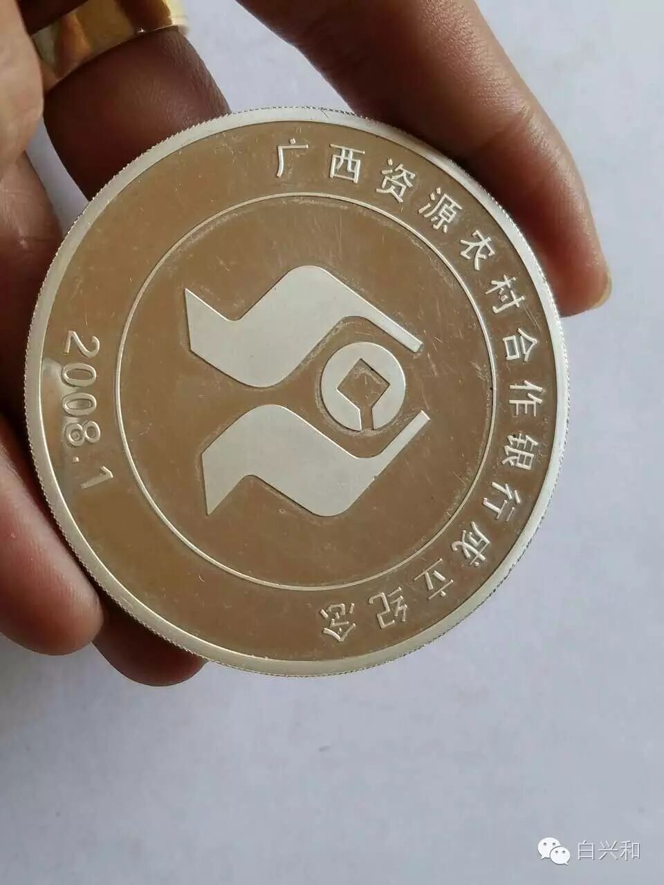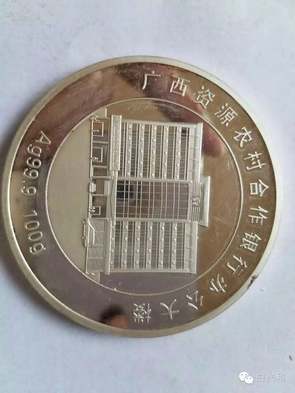 【描述】广西资源县农合行纪念银章,铸造精美大气,边有小磕,收藏自用都不错,品像如图,升值空间大,值得收藏的品种。包真,放心拍。