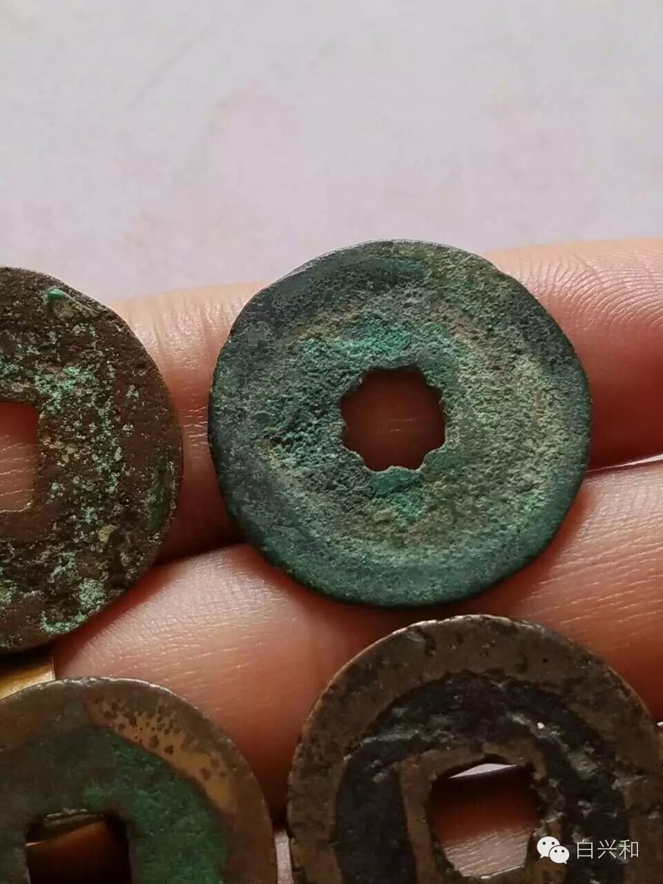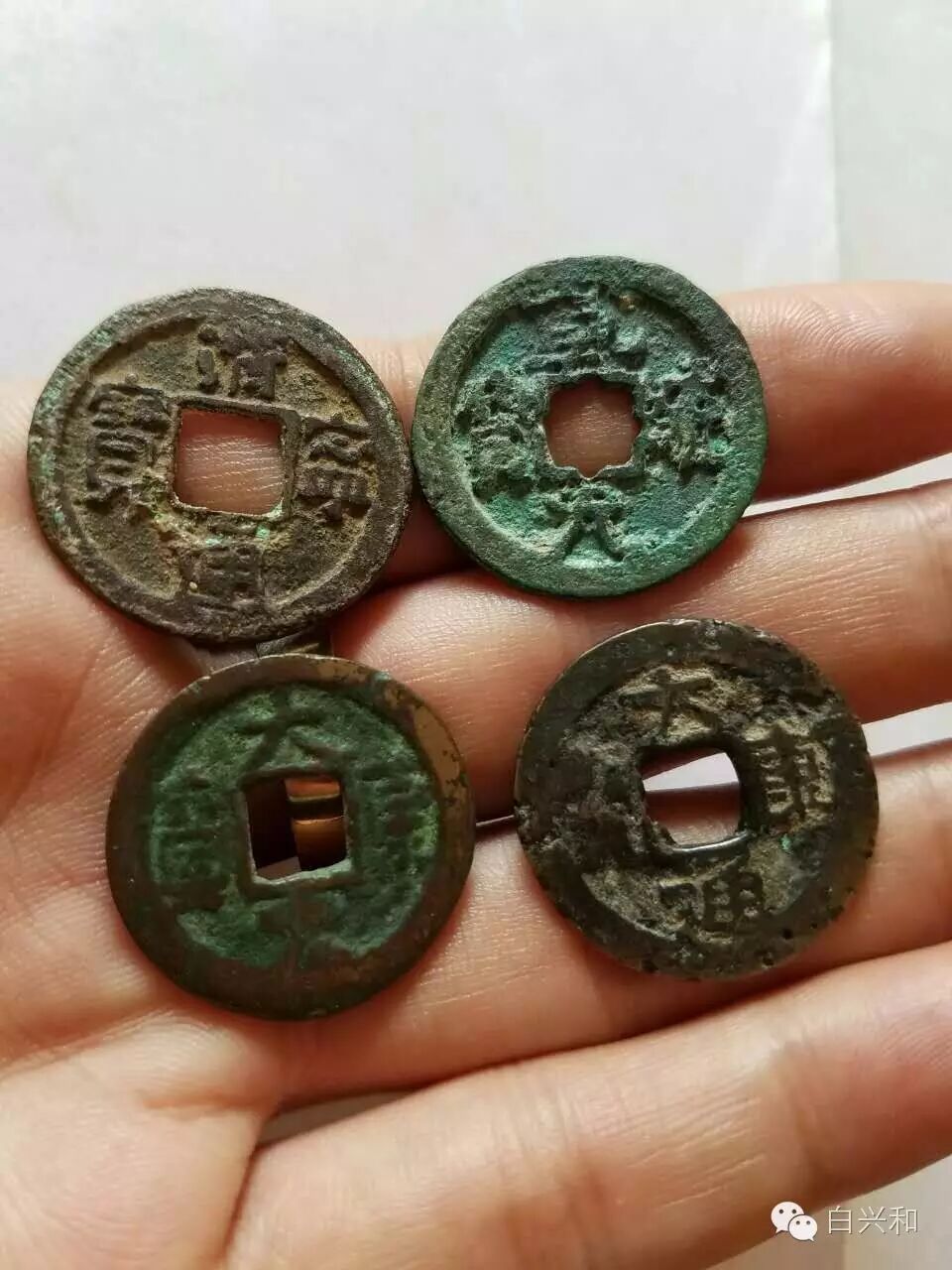【序号】33-1号 【名称】清宁乾统大康4枚辽钱合拍 【年代】辽 【材质】铜 【尺寸】清宁24*1mm,乾统24.2*1.2mm,大康23.5*1.1 23*1.3mm。 【描述】清宁乾统大康4枚辽钱合拍,无裂补,声音好,一枚大康有铸造沙眼,其余完好,品像如图,升值空间大,值得收藏的品种。包真,放心拍。 【起拍】无底价。 【估价】800元以上。 【佣金】买卖双方各3%,卖家包邮。